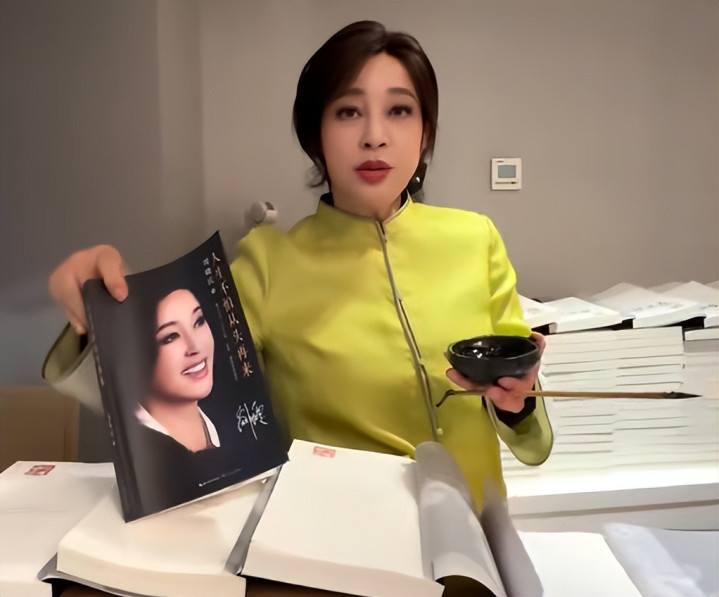 原来是她正在自己的新书上亲笔签名呢,她一头茂密的头发,被染成了棕色。